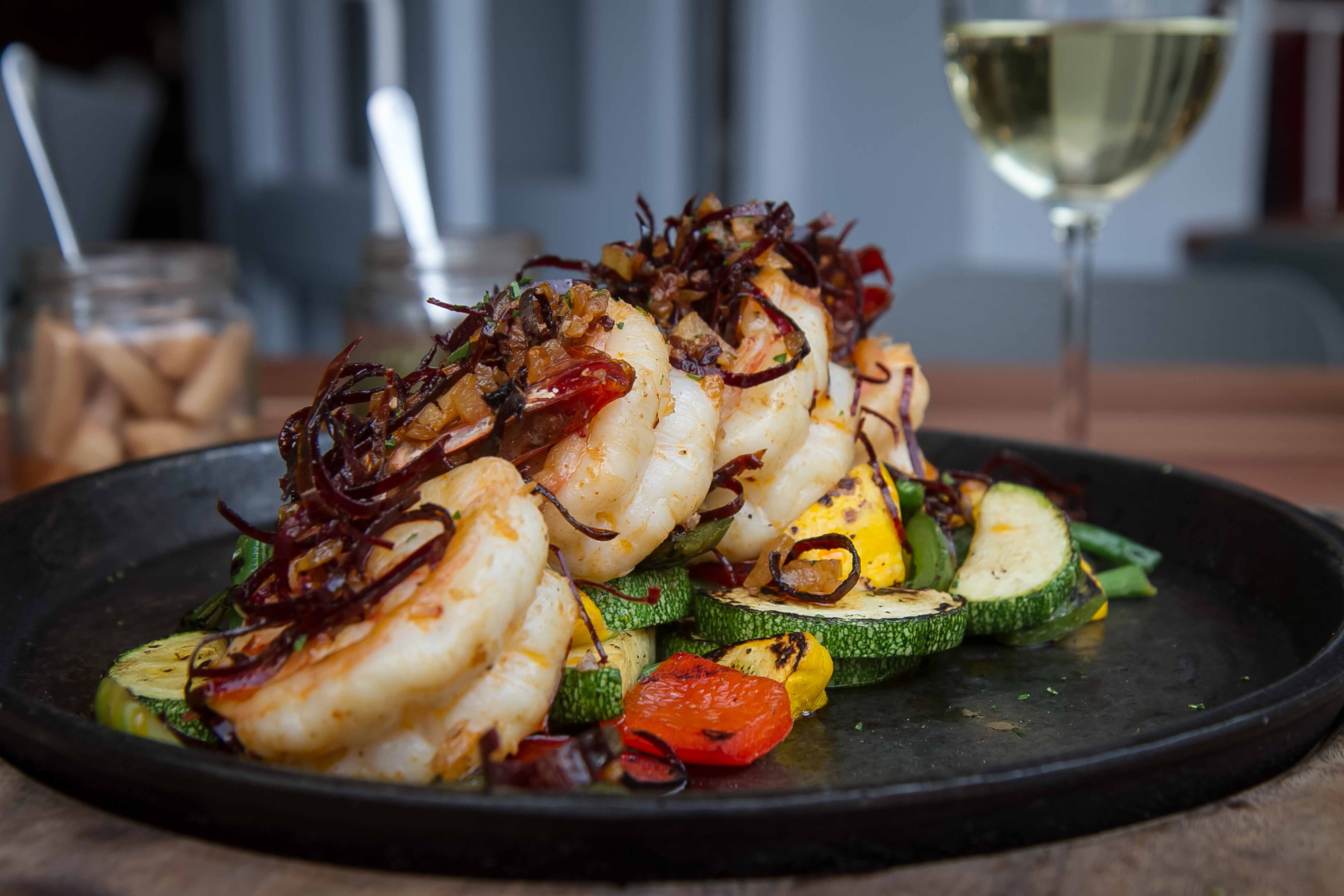 – Camarones al sartén. Lo probamos con diferentes tipos de hongos a propósito de la temporada. Exquisitos.