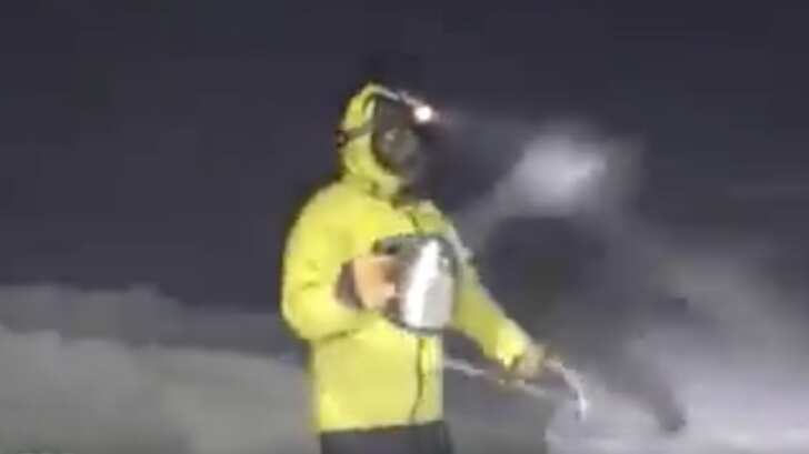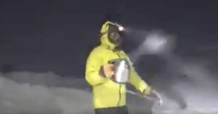 El meteorólogo Adam Gil, del Observatorio Monte Washington, realizó un experimento para mostrar cómo, debido a las bajas temperaturas, el agua hirviente se transforma en nieve en tan sólo unos segundos.