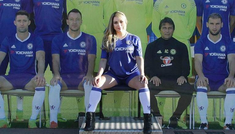 En honor al atacante blue y para demostrar su apoyo a los de Antonio Conte, la exMiss BumBum dejó ver tanto su excepcional figura como su belleza inigualable.
