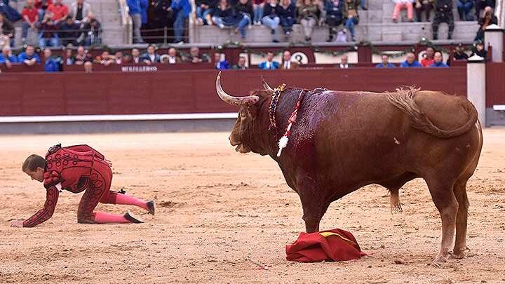 Momentos de drama se vivieron durante la corrida en la plaza de Las Ventas en Madrid, cuando el diestro español Javier Cortés fue prendido por su quinto toro de la tarde.