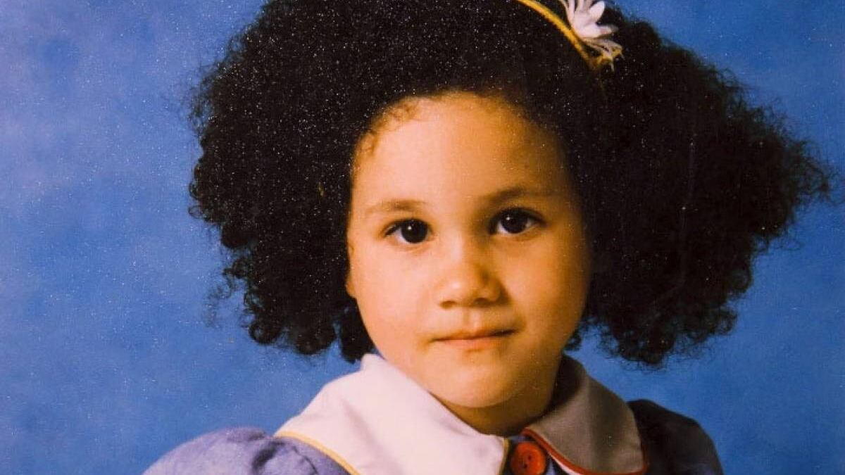 De niña, Meghan Markle lucía un peinado afro, acorde con sus raíces afroamericanas. Hija de madre negra y padre blanco, Meghan nunca ha ocultado el orgullo que siente por ser de raza mixta pero de adulta optó por un look de cabello liso.