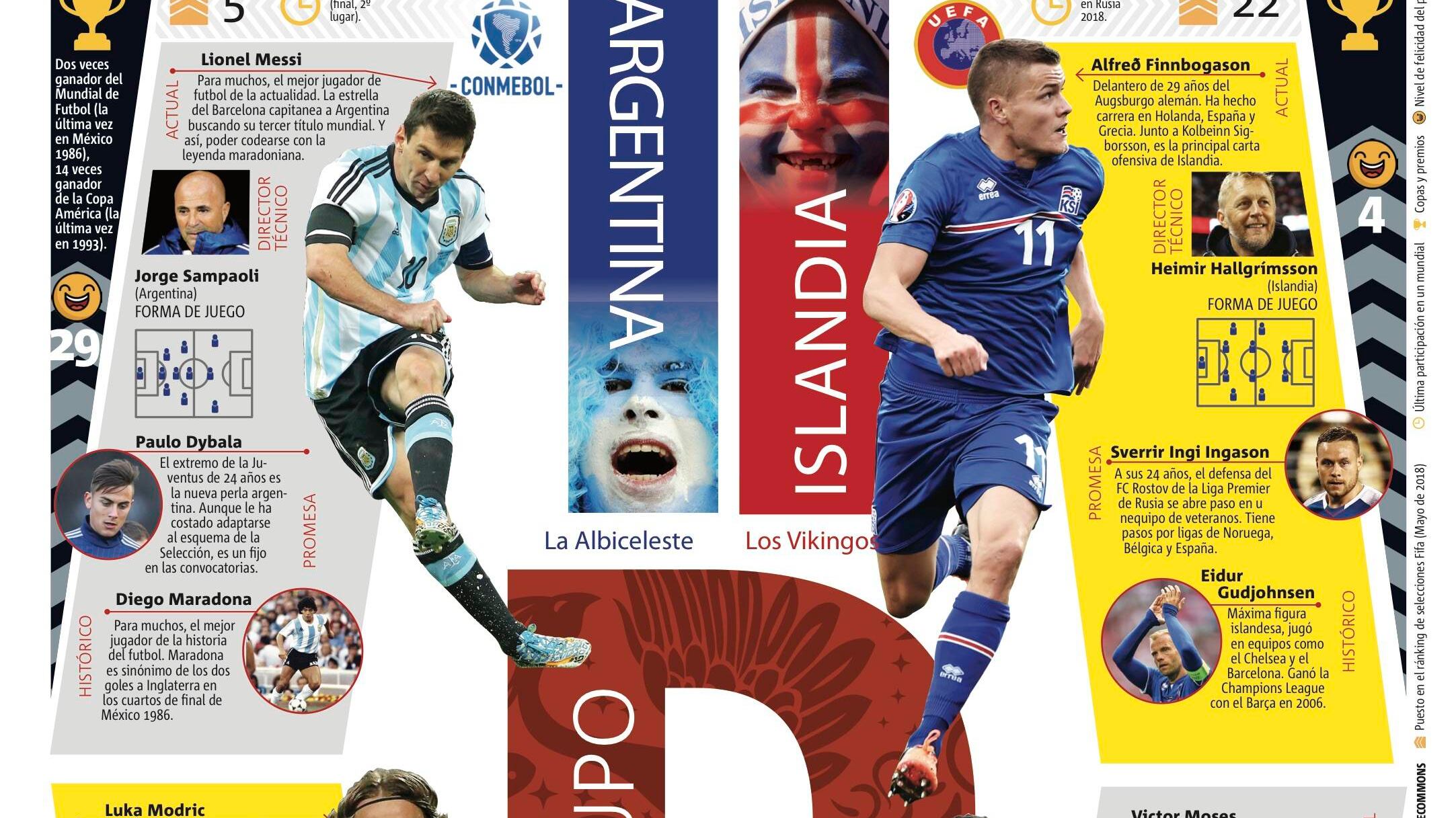 Argentina, Islandia, Croacia y Nigeria forman el Grupo D del Mundial de la FIFA Rusia 2018.