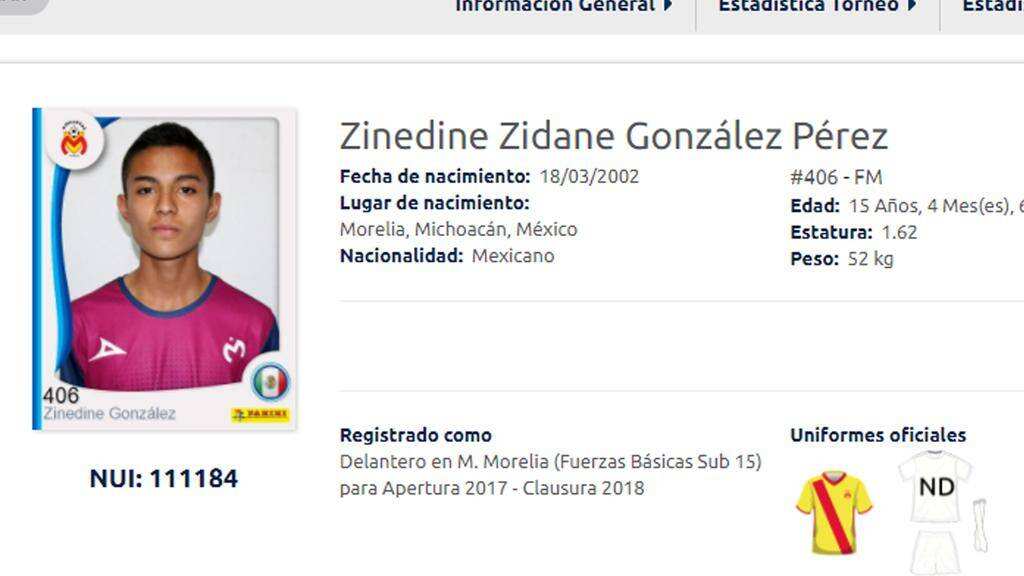 Tan solo en las categorías Sub 15 de la liga mexicana, tenemos a Zinedine González en la alineación de Monarcas y Ronaldo Zinedin Hernández del Santos Laguna, ambos promesas para sus equipos y orgullo para sus familias; incluso de acuerdo a la Federación Mexicana de Futbol, hay 123 futbolistas mexicanos bajo el nombre de Ronaldo.