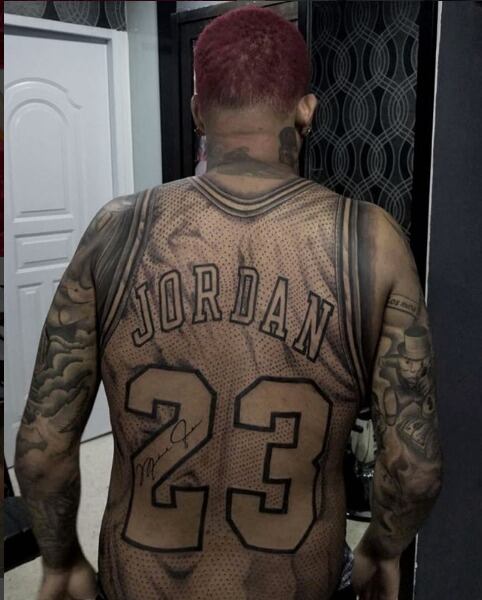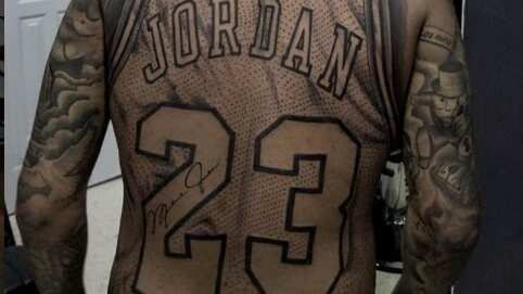 Se trata del dibujo de la parte dorsal del jersey que utilizaba Michael Jordan, según él, a manera de homenaje.