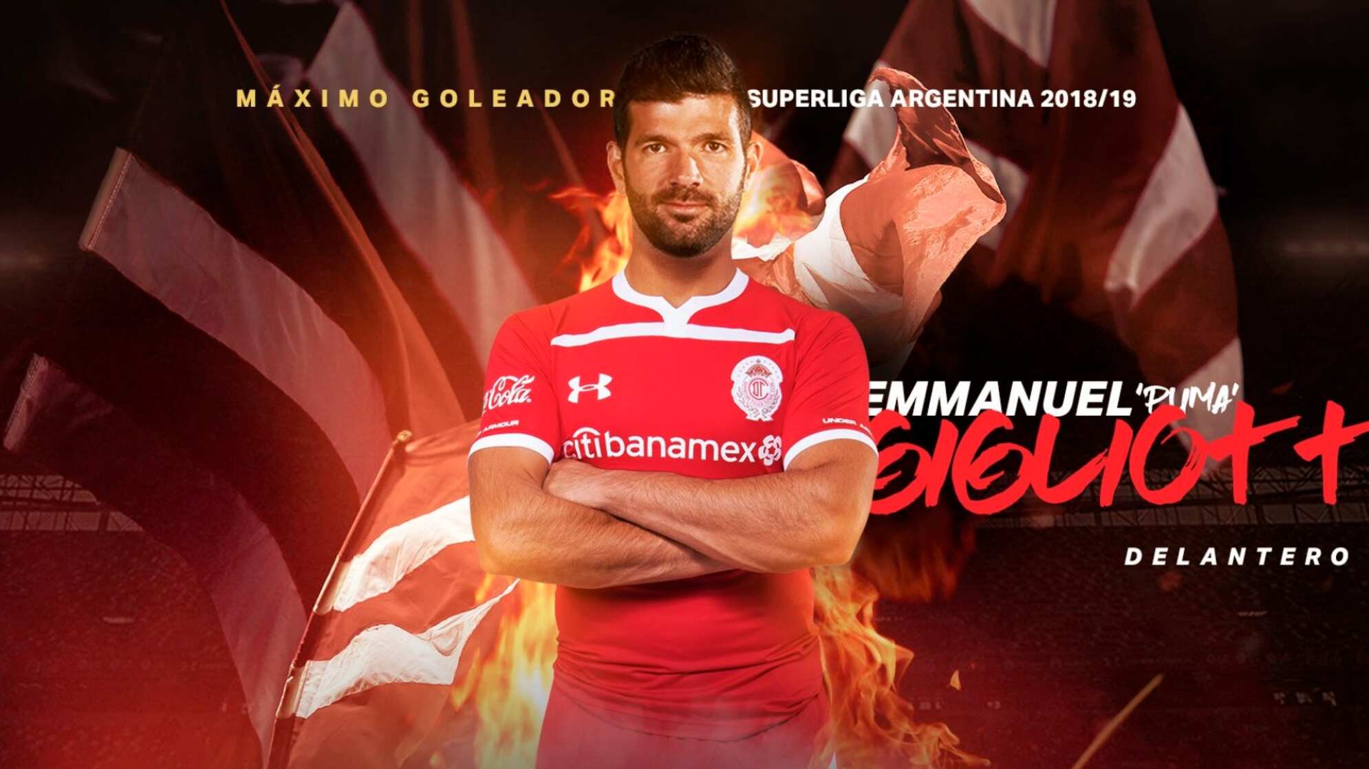 «¡Damos la bienvenido a nuestro infierno, al máximo goleador de la Súper Liga de Argentina 2018-2019. Emmanuel «El Puma» Gigliotti. Nuestro infierno es tu casa!«, escribió el Toluca mediante su cuenta de Twitter.