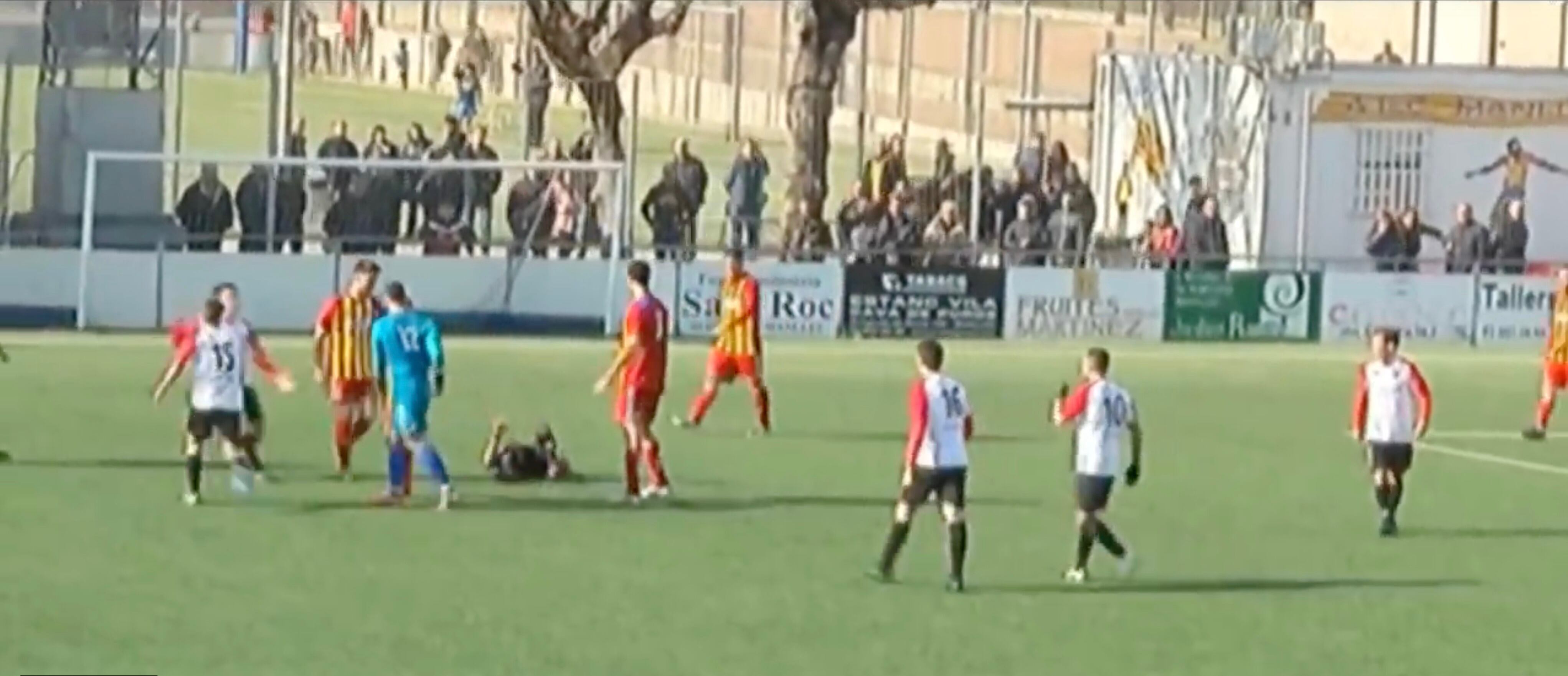 Iván González, portero del AE Cultural Manileu de España, pateó a un árbitro durante el partido ante el San Cugat del torneo de la Primera catala este domingo debido a que le anuló un gol de último minuto con el que su equipo hubiera empatado el marcador 1-1.