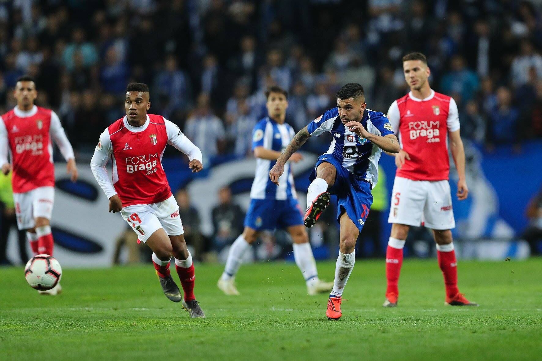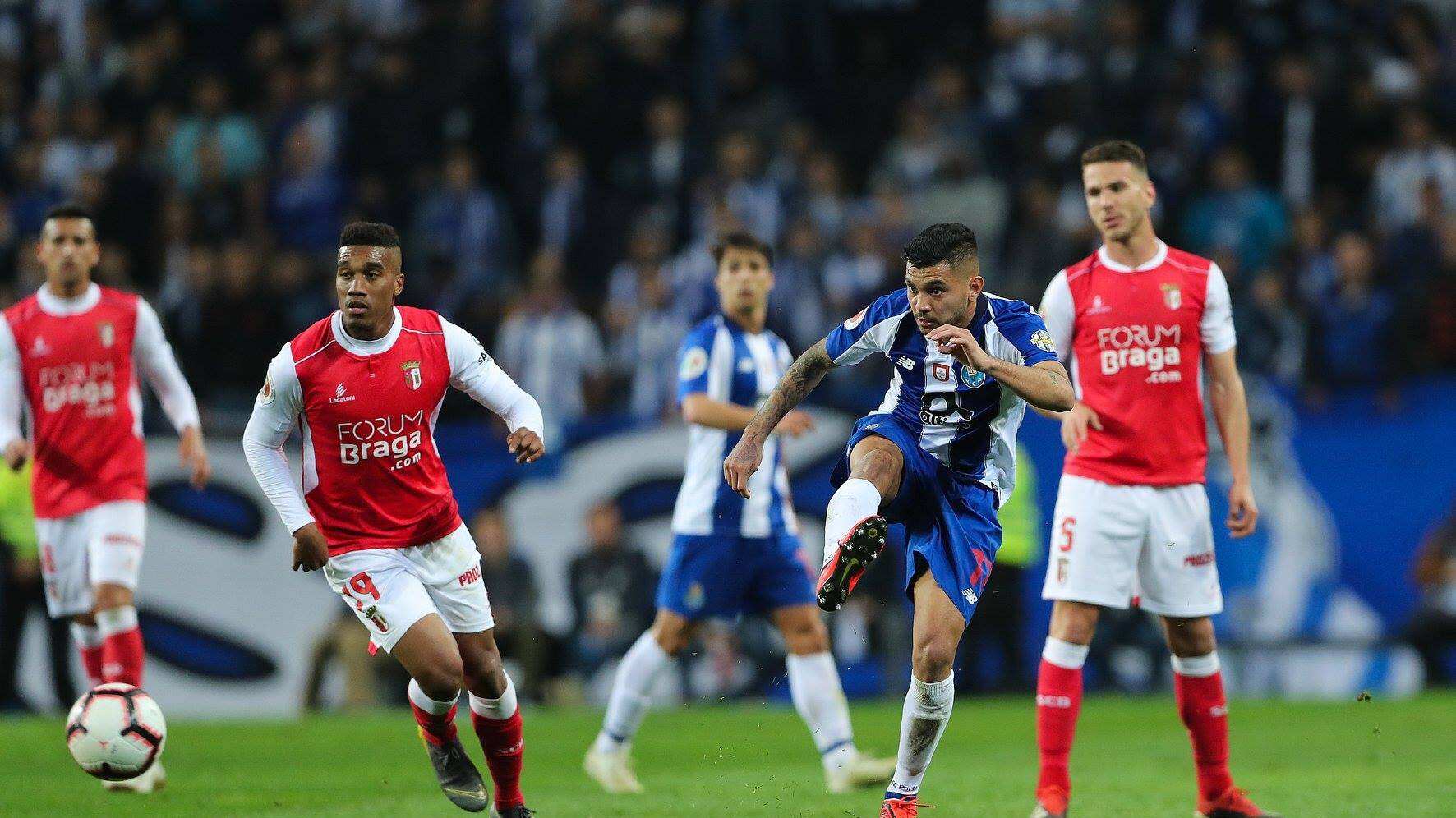 En el minuto 27 empató el delantero brasileño «Tiquinho» Soares, pero en el inicio de la segunda mitad fue el extremo brasileño Murilo quien puso de nuevo con ventaja a los “minhotos».