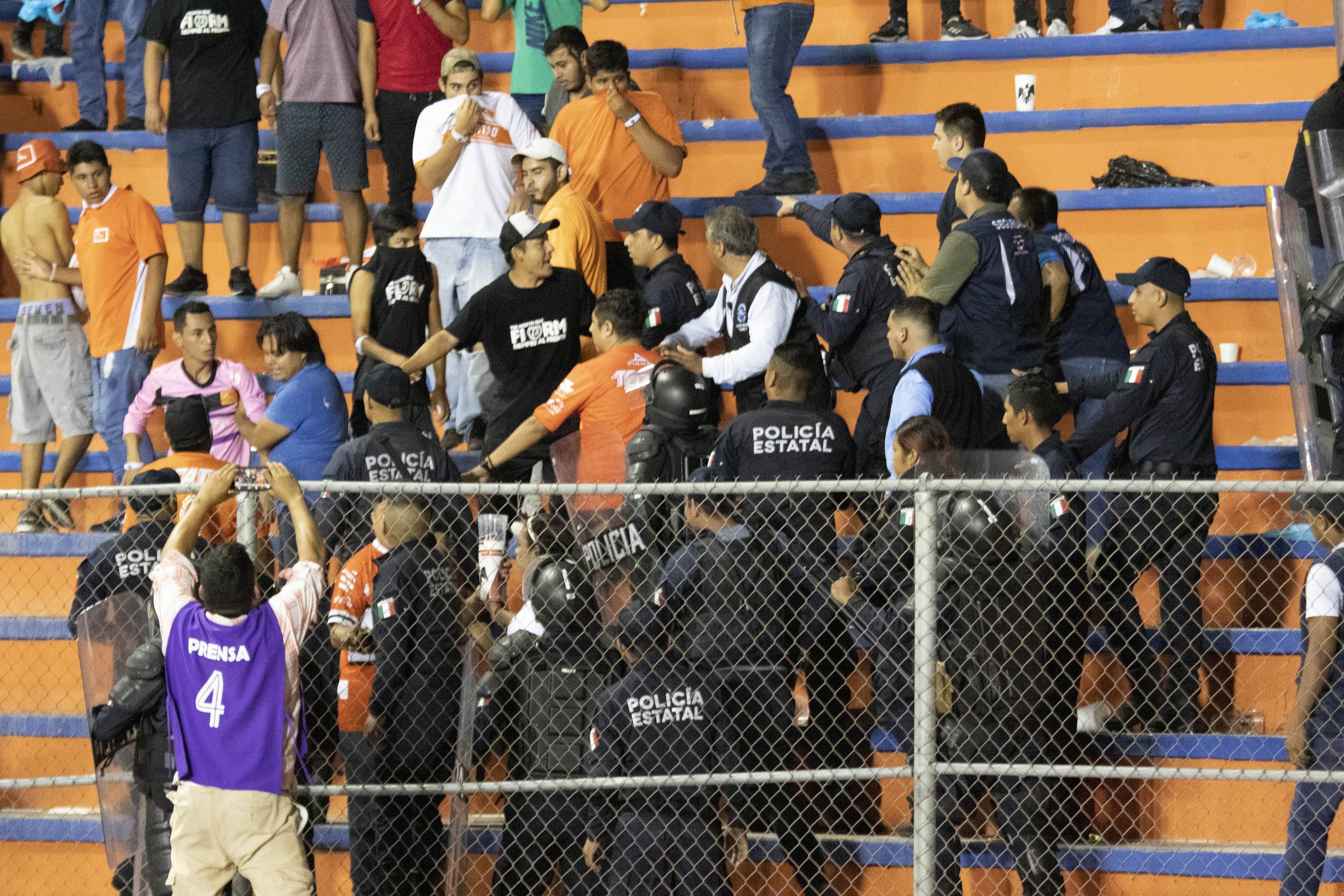 La afición se enojó aún más, luego de que la niña no recibió inmediatamente atención médica, por lo que arremetieron contra la policía en el Estadio Marte Gómez.