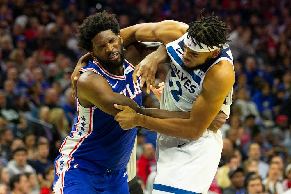 Tremenda bronca fue la que se armó en el Wells Fargo Center de Filadelfia entre las dos estrellas Joel Embiid de Sixers y Karl-Anthony Towns de Wolves.
