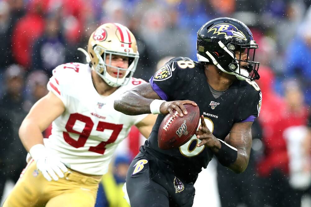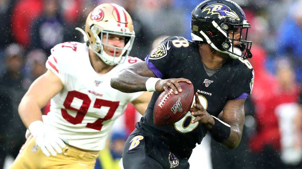 Ni la lluvia, ni el viento, ni los 49ers de San Francisco con la mejor defensiva de la liga evitaron que Lamar Jackson llevara a los Ravens de Baltimore a su octavo triunfo consecutivo, un récord de franquicia.
