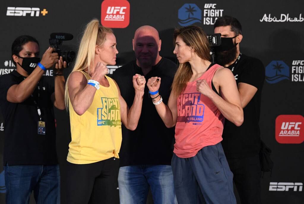 Holm (13-5), de 38 años busca sumar su segunda victoria consecutiva, algo que no consigue desde 2015. Su última pelea fue contra Raquel Pennington a quien venció en enero por decisión unánime, en Las Vegas, Nevada.