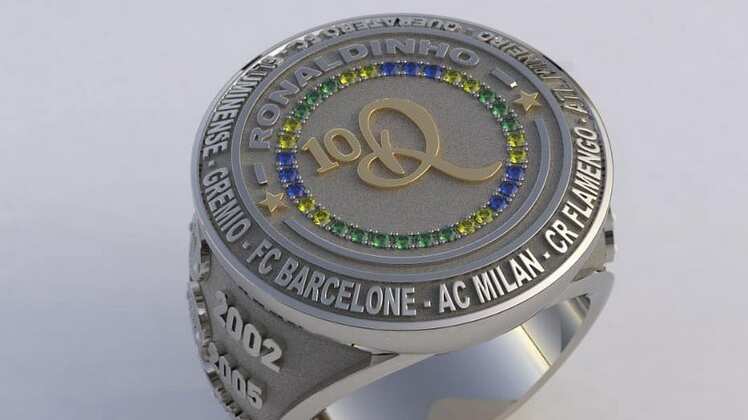 Una joyería francesa decidió crear un anillo para Ronaldo de Assis Moreira, Ronaldinho. La pieza dedicada al brasileño incluye los nombres de los equipos donde jugó y también los títulos que ganó durante su carrera.