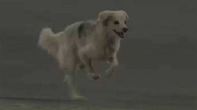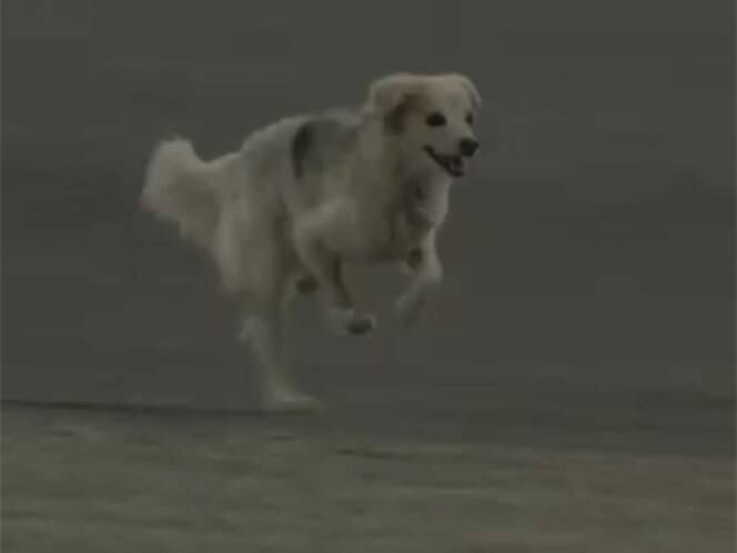 El perro corrió por la pista a una velocidad hasta salirse por un costado de la pista.