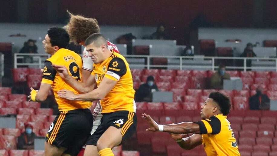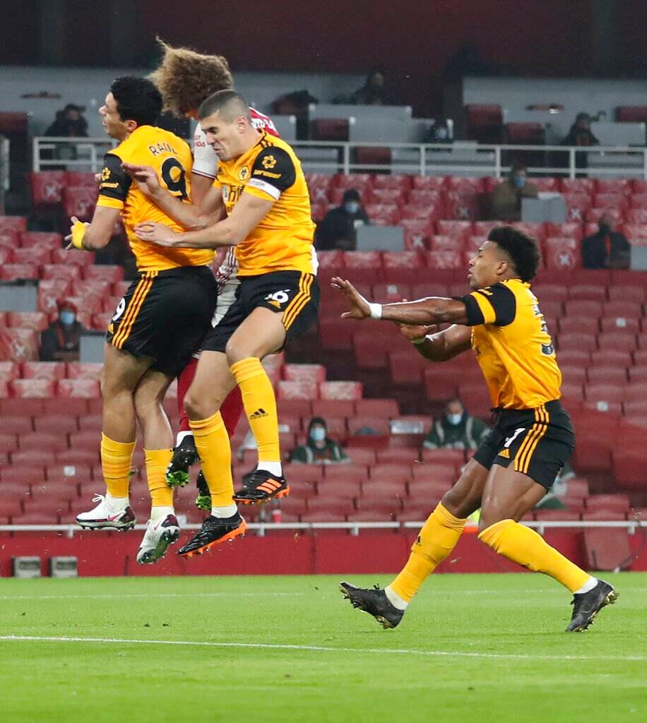Corría el minuto cuatro del partido, cuando los Gunners cobraron un tiro de esquina. Jiménez despejó de cabeza pero Luiz llegó y golpeó al atacante de los Wolves.