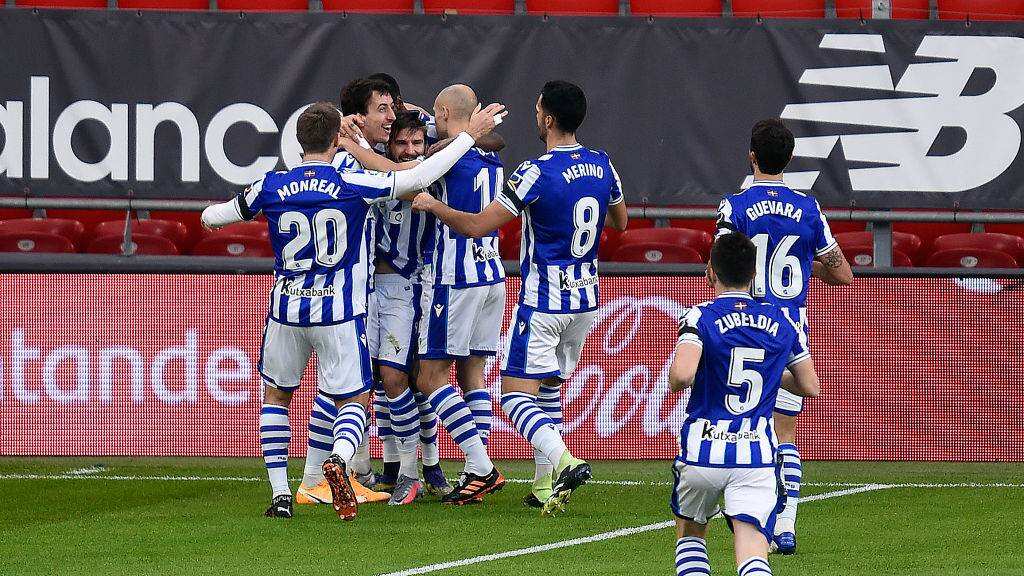 Cristian “Portu” Portugués anotó el único gol del encuentro luego que el mediocampista Mikel Merino superó a Mikel Oyarzabal en la banda, desde donde mandó pase a “Portu”, quien definió a los cinco minutos.