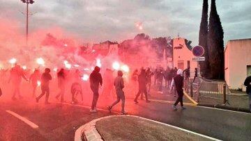 Las protestas se realizan a unas horas del vital duelo del Olympique frente al Rennes, en busca de puestos europeos.