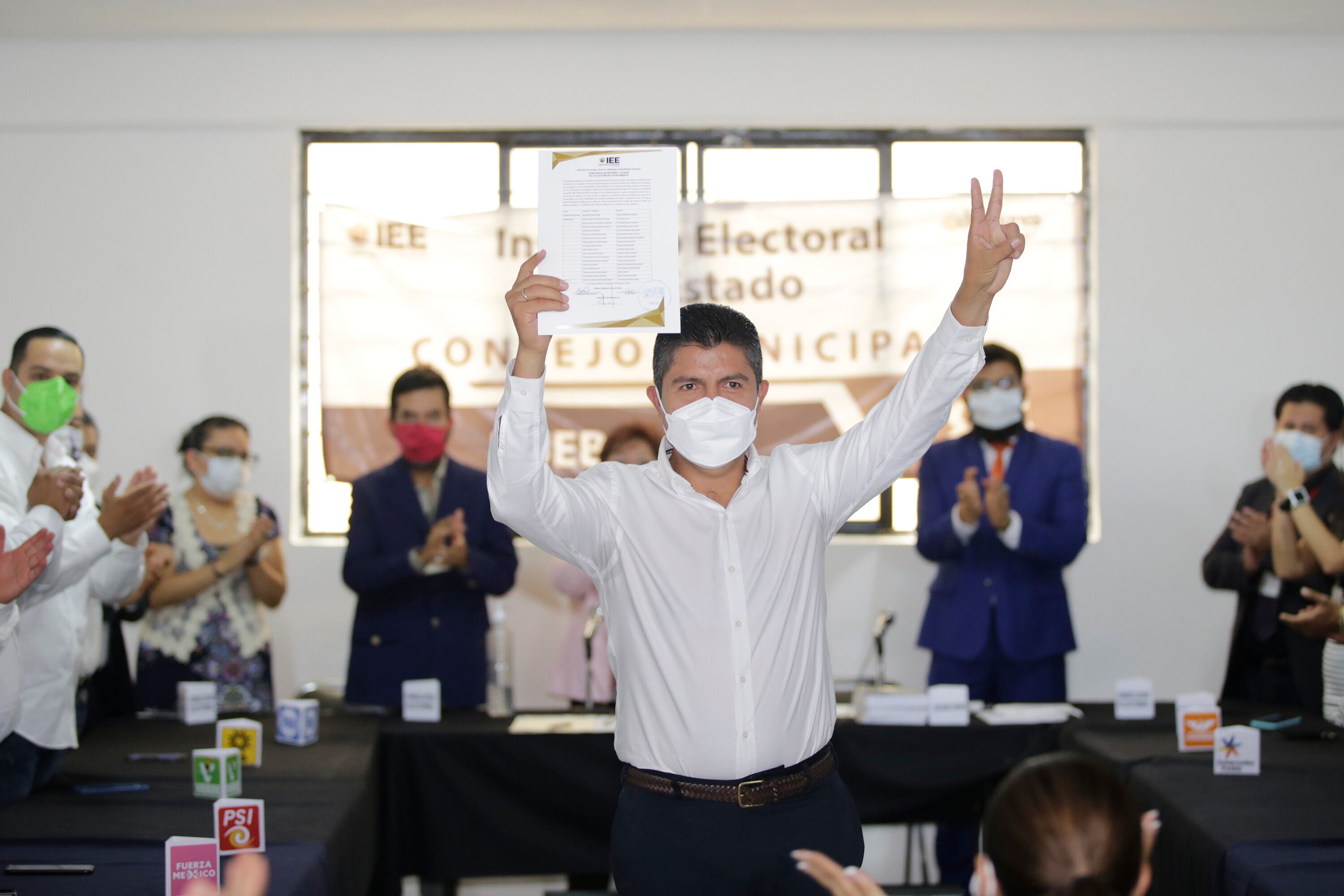 Eduardo Rivera Pérez recibió la constancia de mayoría, que lo acredita como presidente electo del municipio de Puebla, por parte del Consejo Municipal del Instituto Electoral del Estado (IEE).