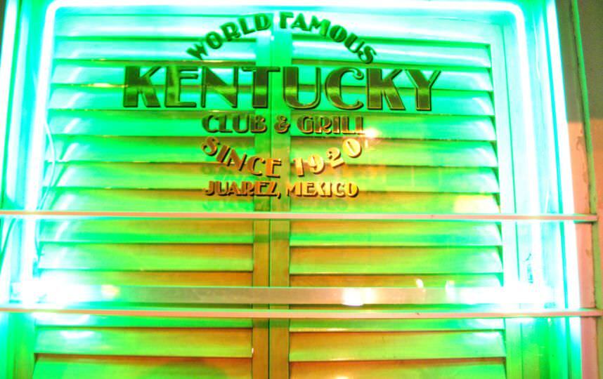 El Kentucky Bar está a unos pasos del puente internacional Santa Fe, que conecta a Ciudad Juárez con El Paso, Texas. Por su ubicación y por sus famosas margaritas, muchos famosos han visitado este bar, y leyendas sobre algunos de ellos se repiten a menudo, como cuando Elvis Presley cruzó la frontera después de un concierto en El Paso; o Bob Dylan, quien dicen se encariñó con una prostituta y se refugió en el Kentucky tras un terrible desamor y una gripa infernal. Jim Morrison intentó bailar sobre la vieja barra de madera, e incluso cuentan que Johnny Cash pidió unos tragos antes de intentar cruzar pastillas de contrabando hacia Texas.