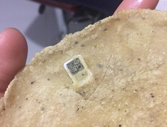 Muchas cosas pueden ser encontradas por accidente en una tortilla, una piedrita, un pedazo de plástico y hasta un pedazo de leña, pero ¿un chip?