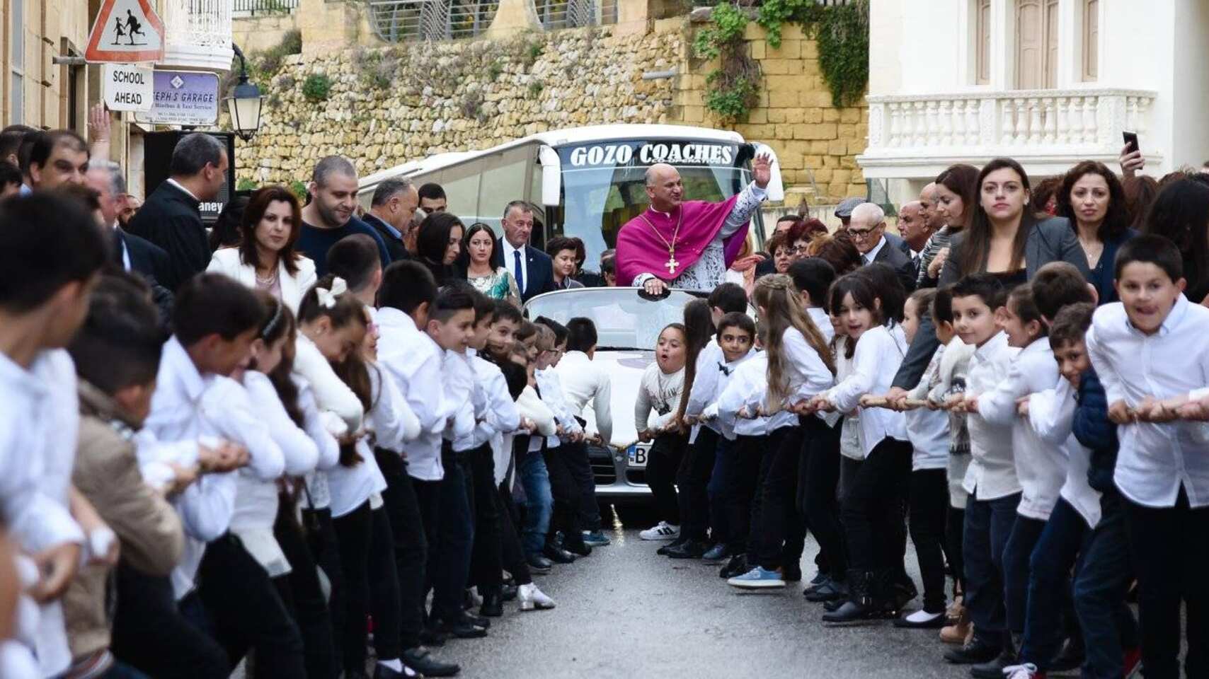 Un video difundido en redes sociales causa polémica; usuarios critican la forma en que fue recibido un arzobispo en la ciudad maltesa de Zebbug, en la isla de Gozo, pues mientras el religioso saludaba a su llegada, decenas de niños jalaban el lujoso automóvil en el que se trasladaba.