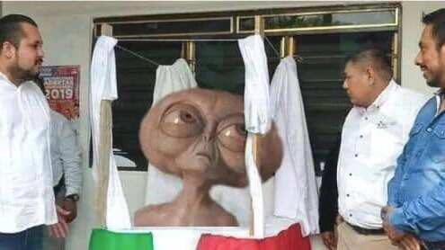 La figura de color café y unos 50 centímetros de altura fue comparada por algunos usuarios de redes sociales con un alienígena, debido la la desproporción de sus ojos.