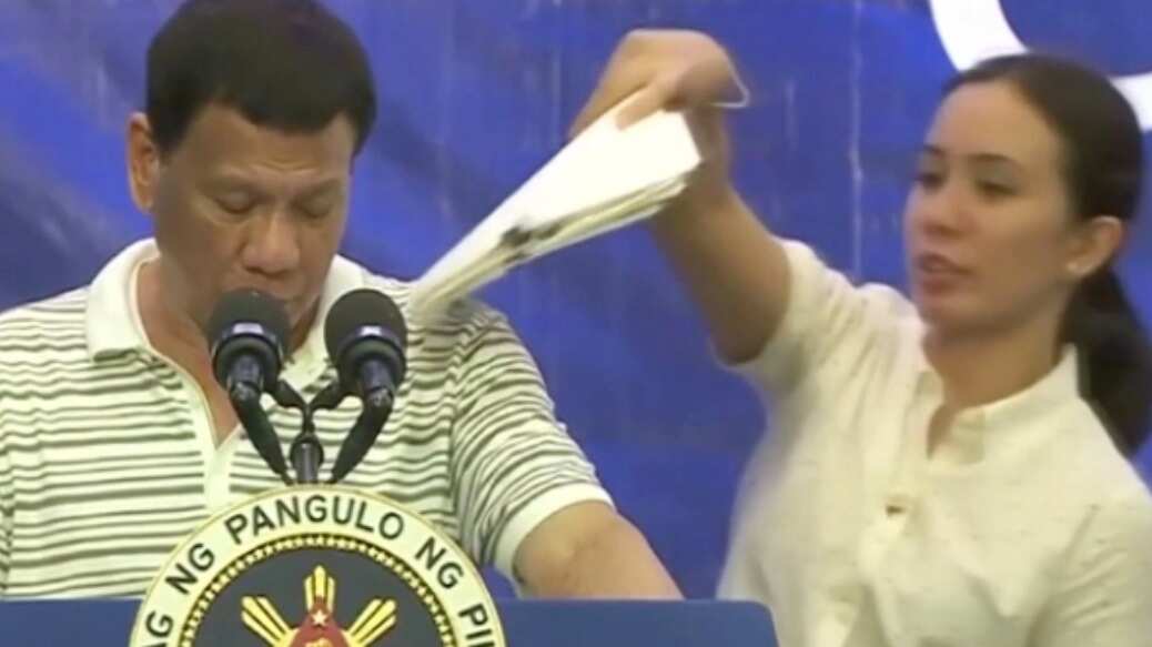 Duterte estaba leyendo la lista de candidatos senatoriales en un evento de campaña en la provincia de Bohol cuando la cucaracha apareció por detrás de su hombro izquierdo.
