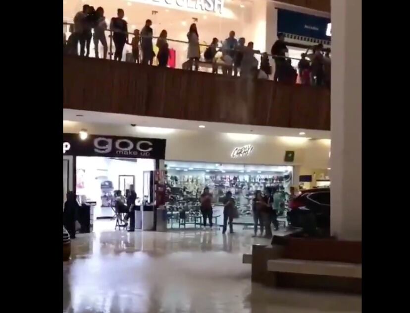 Usuarios de redes sociales compartieron el video en el que se muestra un chorro de agua que cae desde el techo del inmueble que ocasiona un charco en el piso.