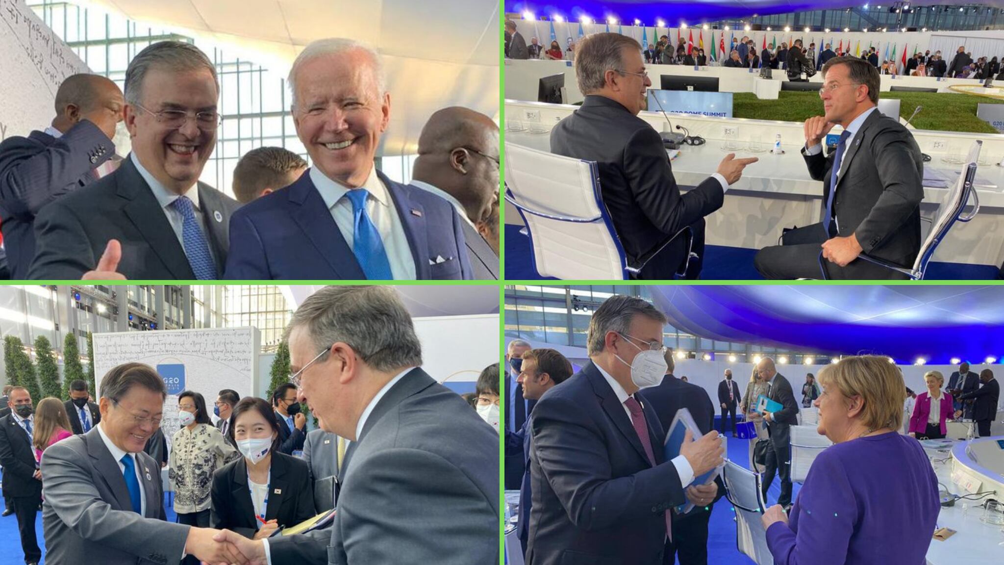 Entre los líderes globales con los que se reunió, están Emmanuel Macron, presidente de Francia; Joe Biden, presidente de Estados Unidos; Angela Merkel, canciller de Alemania; Moon Jae-In, presidente de Corea del Sur; Alberto Fernández, presidente de Argentina y Mark Ruttle, primer ministro de Países Bajos.