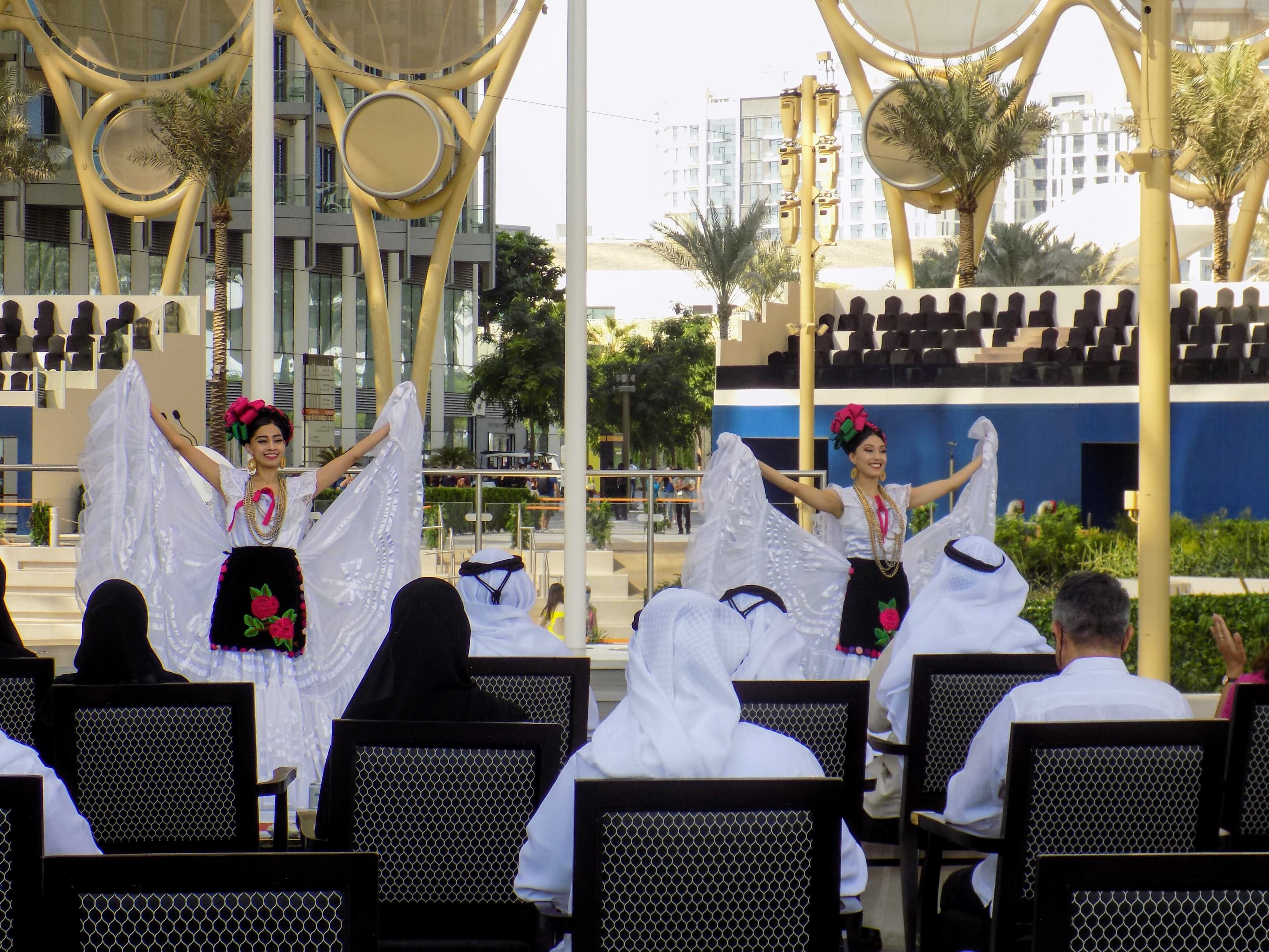 Entre lo más destacado que ha tenido México hasta ahora, está la actuación del Ballet Folklórico de México de Amalia Hernández, un espectáculo en el que participaron 70 bailarines vestidos con trajes tradicionales mexicanos, que representaban las coloridas tradiciones del país. También, el tenor mexicano Javier Camarena actuó en los escenarios Mar, Sol y Tierra en varios momentos del día, y hubo una aparición de la cantautora Lila Downs, ganadora de un premio Grammy. Por otro lado, hubo una actuación cultural de Elisa Carrillo, la primera bailarina mexicana que actuó en el Ballet Público de Berlín, en el Anfiteatro del Milenio de Dubai.