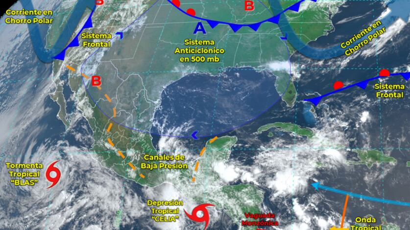 Mientras tanto, ‘Celia’ pasó de tormenta a depresión tropical, según el SMN. El fenómeno meteorológico se aleja de México y se encuentra a 135 kilómetros al sur-suroeste de San Salvador, El Salvador, y a 350 km al sur-sureste de la desembocadura del Río Suchiate (frontera México-Guatemala).