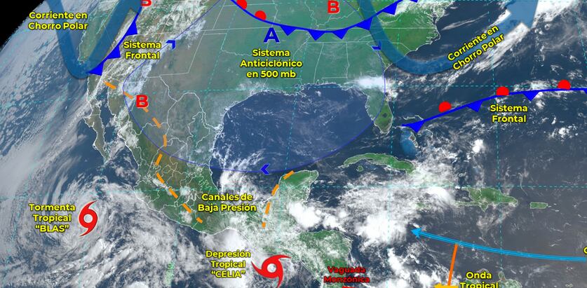 Mientras tanto, ‘Celia’ pasó de tormenta a depresión tropical, según el SMN. El fenómeno meteorológico se aleja de México y se encuentra a 135 kilómetros al sur-suroeste de San Salvador, El Salvador, y a 350 km al sur-sureste de la desembocadura del Río Suchiate (frontera México-Guatemala).