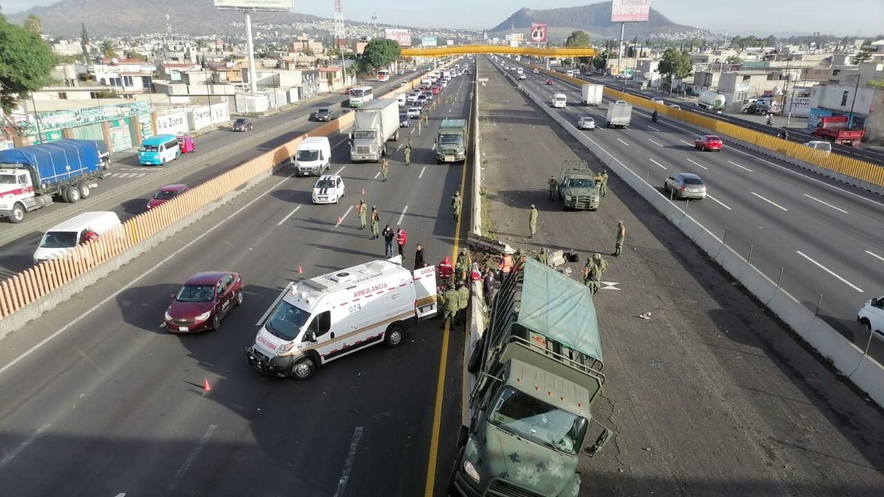 Tres militares resultaron heridos, luego de que una unidad de la Secretaría de la Defensa Nacional (Sedena) en la que iban a bordo, y que circulaba sobre la autopista México-Puebla, a la altura del kilómetro 25, en dirección a la Angelópolis, se impactó contra el muro de contención y volcó.