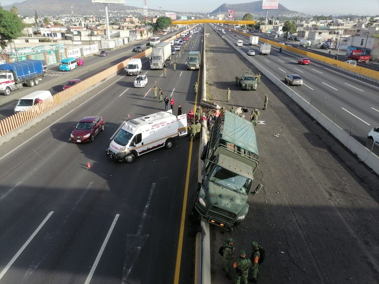 Tres militares resultaron heridos, luego de que una unidad de la Secretaría de la Defensa Nacional (Sedena) en la que iban a bordo, y que circulaba sobre la autopista México-Puebla, a la altura del kilómetro 25, en dirección a la Angelópolis, se impactó contra el muro de contención y volcó.