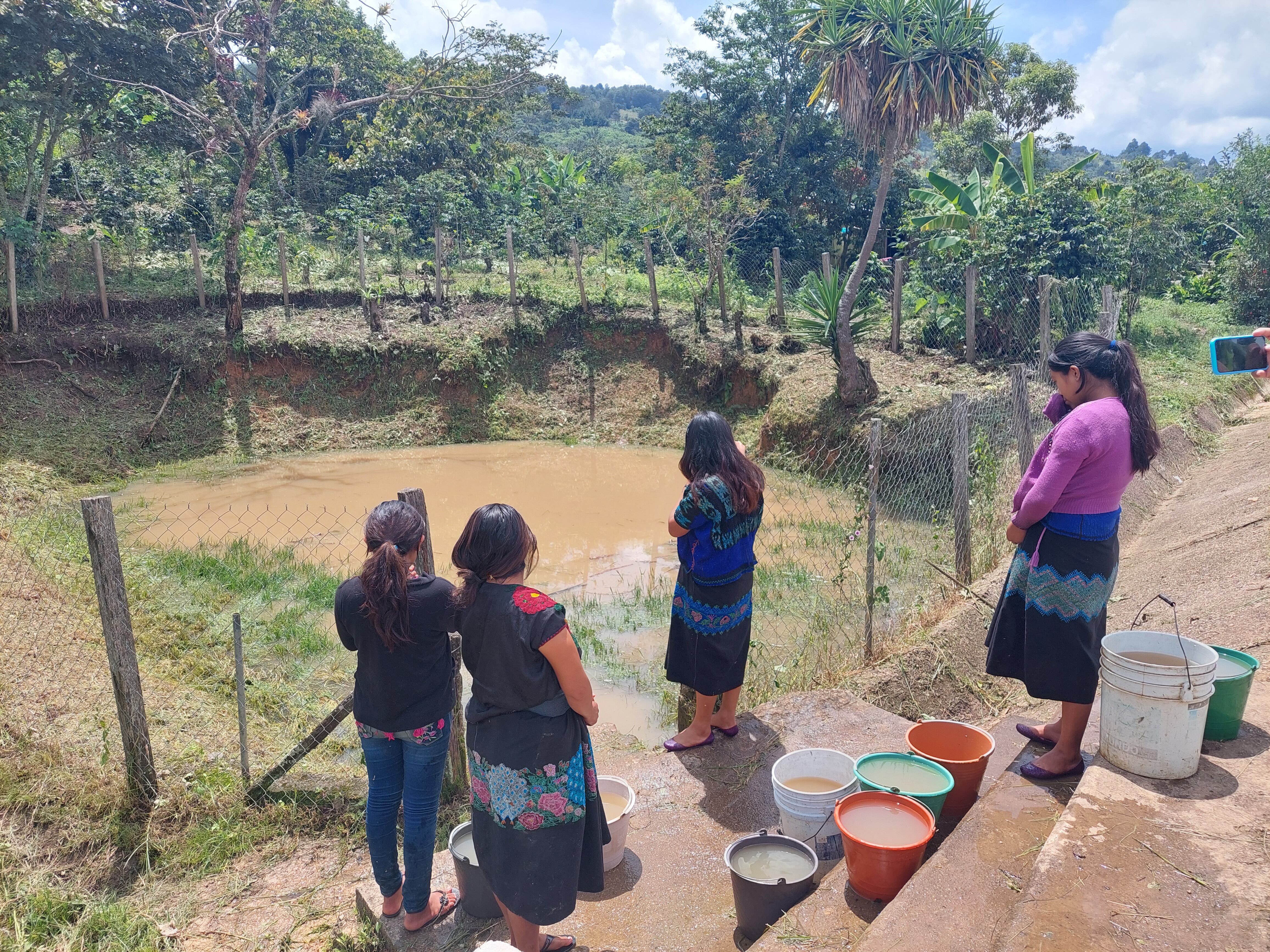 Para lavar ropa o bañarse también utilizan el líquido de las precipitaciones, el cual obtienen mediante hoyos, de cinco metros de profundidad, cavados en la tierra; no están cubiertos por nada, entonces, es agua lodosa. Hay alrededor de cinco; todos vacíos en temporada de sequía –marzo, abril y unos días de mayo.
