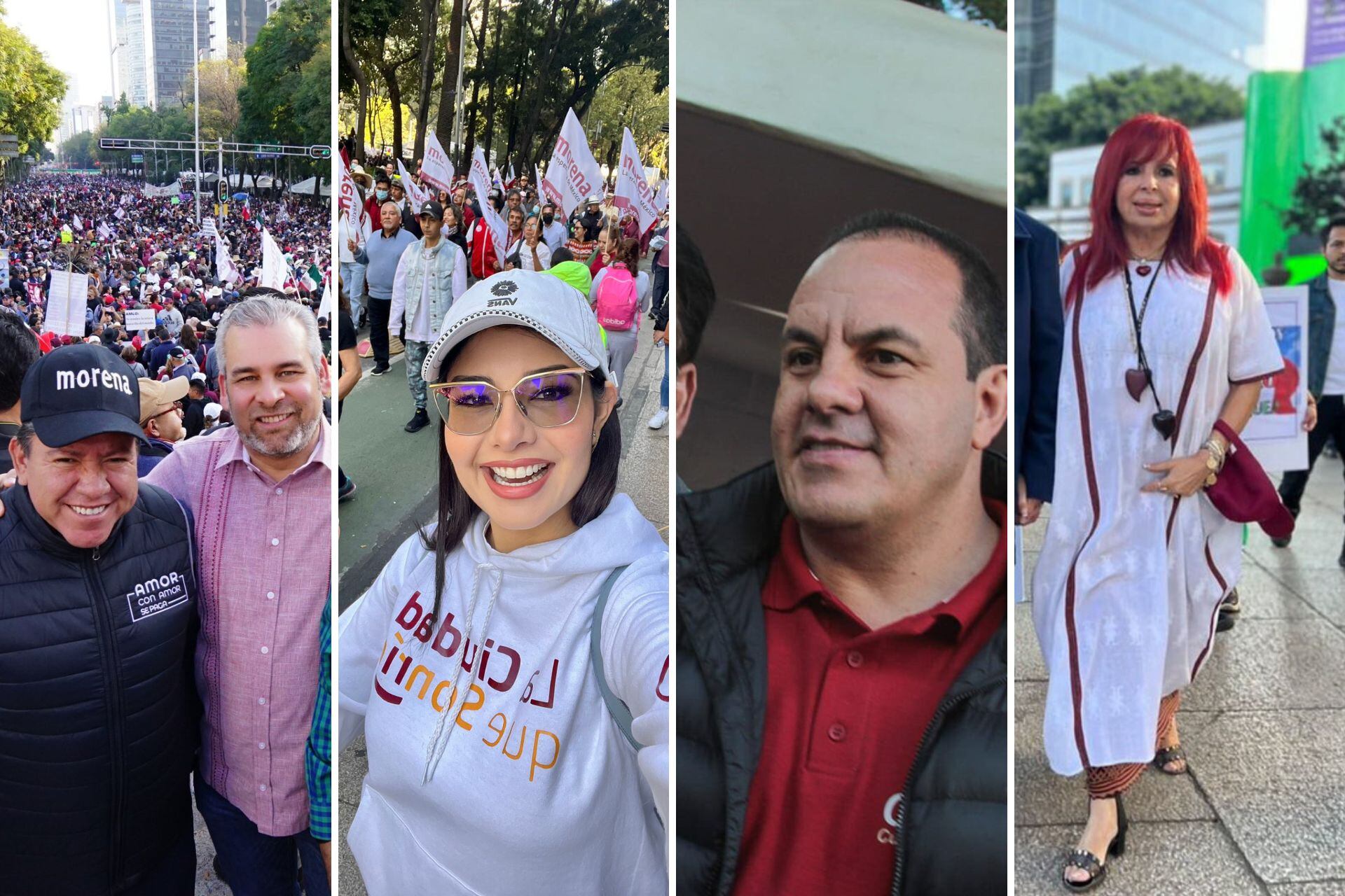 Figuras del ámbito político nacional asistieron a la marcha de Ángel de la Independencia al Zócalo de la Ciudad de México que convocó el presidente, Andrés Manuel López Obrador, este 27 de noviembre para celebrar los cuatro años desde que asumió el gobierno de la República.