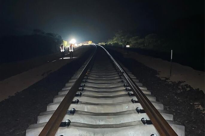 El presidente Andrés Manuel López Obrador presumió en redes sociales que aunque el sol se oculte los trabajos para la construcción del Tren Maya no se detienen, pues en la noche se colocan rieles y durmientes para el paso de los trenes.