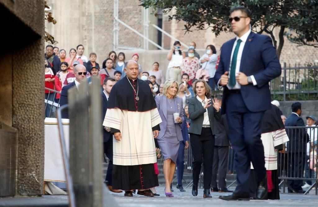 Jill Biden, esposa del presidente de Estados Unidos, Joe Biden, visitó la Basílica de Guadalupe, en la alcaldía Gustavo A. Madero, en donde estuvo acompañada de la esposa del presidente Andrés Manuel López Obrador, Beatriz Gutiérrez.