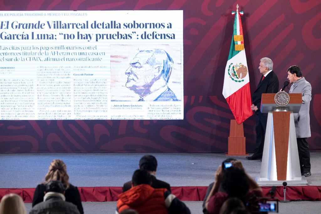 “Se trata de una autoridad del más alto nivel que estaba a cargo de la seguridad pública en el gobierno e Calderón, y que tenía una doble función, según las acusaciones que está haciendo el Gobierno de Estados Unidos. Que, al mismo tiempo que se encargaba de la seguridad pública, protegía a uno de los carteles o grupos de la delincuencia organizada, que estaba a su servicio y que recibía dinero por eso, señaló López Obrador.