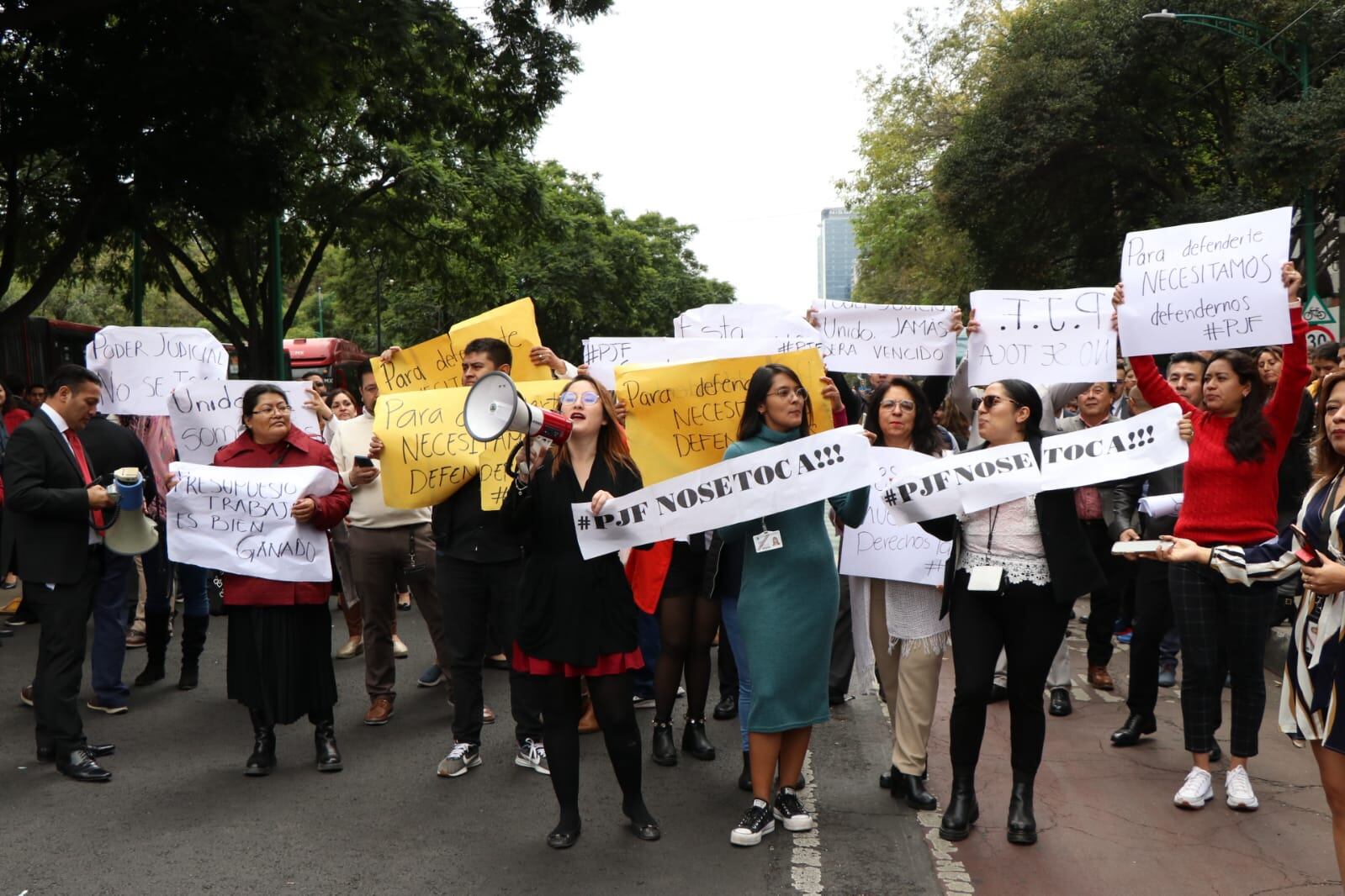 Asimismo, los manifestantes cerraron Avenida de los Insurgentes en su tramo sur con pancartas que dicen “#PJF no se toca!!!” y “para defenderte, necesitamos defendernos”. Además, amagaron con cerrar toda la vialidad el martes 17 a partir de las 08:00 horas.