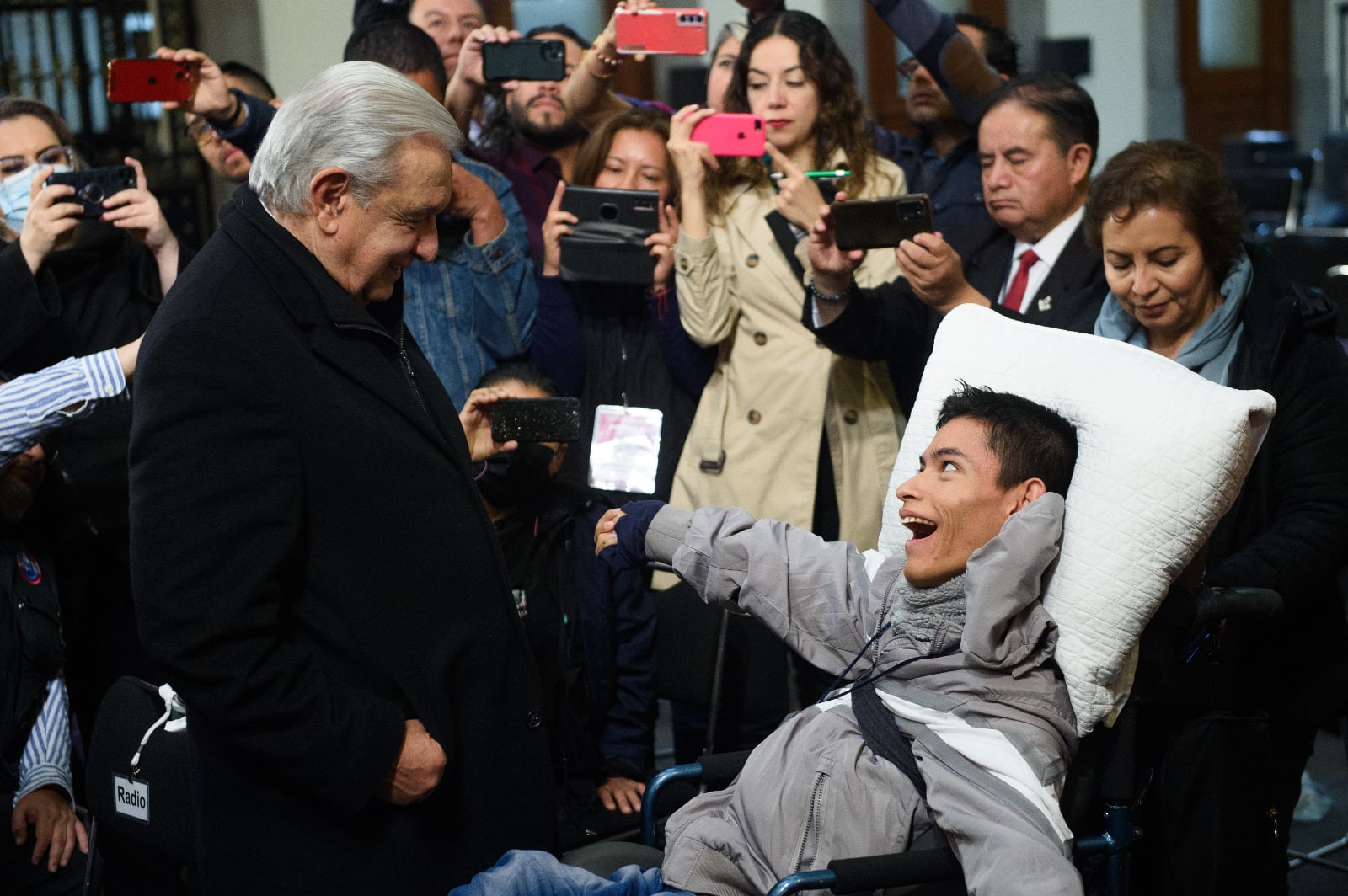 Durante la conferencia de prensa matutina de este lunes, el activista con discapacidad Daniel Robles Haro se reunió con el presidente Andrés Manuel López Obrador al finalizar la conferencia de prensa matutina.