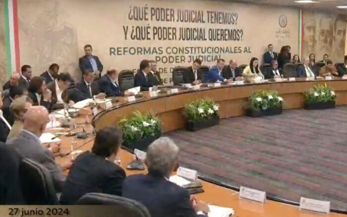 La primera mesa llevó por título: “¿Qué Poder Judicial tenemos? ¿Qué Poder Judicial queremos?”. La reunión inició a las 17:00 horas y fue encabezada por la presidenta de la Cámara de Diputados, Marcela Guerra, y el presidente de la Junta de Coordinación Política, Jorge Romero, diputados del PAN.
