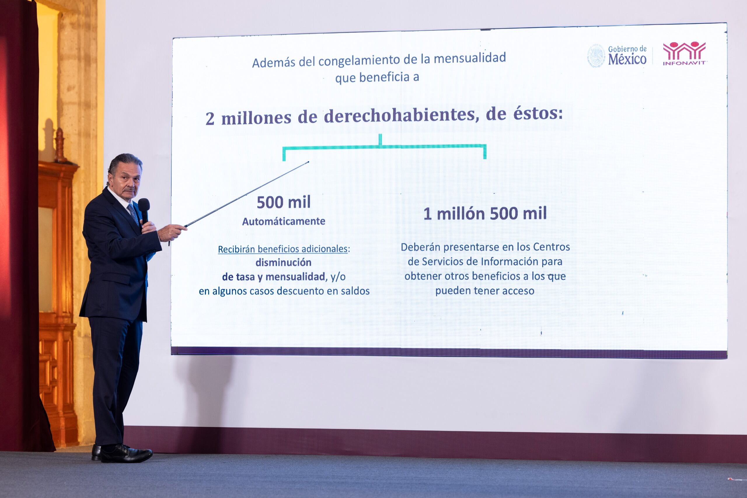 Romero Oropeza informó que de esos 2 millones de derechohabientes, cuyo acuerdo es de antes del 2013, 500 mil recibirán automáticamente beneficios como disminución de tasa y mensualidad y/o en algunos casos descuento en saldos.