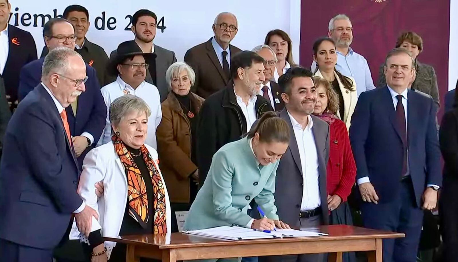 “Como ven, este es un acuerdo donde estamos las 32 entidades, agradezco a todos y todas las gobernadores que son parte del movimiento del que venimos y agradezco más a todos los gobernadores los que no son parte del movimiento y que están en este momento firmando este gran acuerdo unitario”, comentó Sheinbaum Pardo, al agradecer a los trabajadores agricultores “que nos dan de comer todos los días”, así como a los empresarios, universidades y representantes del Poder Legislativo.