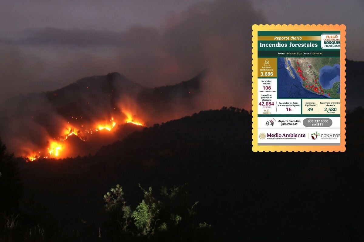 De acuerdo a la autoridad, las llamas han afectado 42 mil 084 hectáreas, con 106 incendios activos, de los cuales un total de 16 están en áreas naturales protegidas como el Tepozteco, un icónico destino turístico de fin de semana.