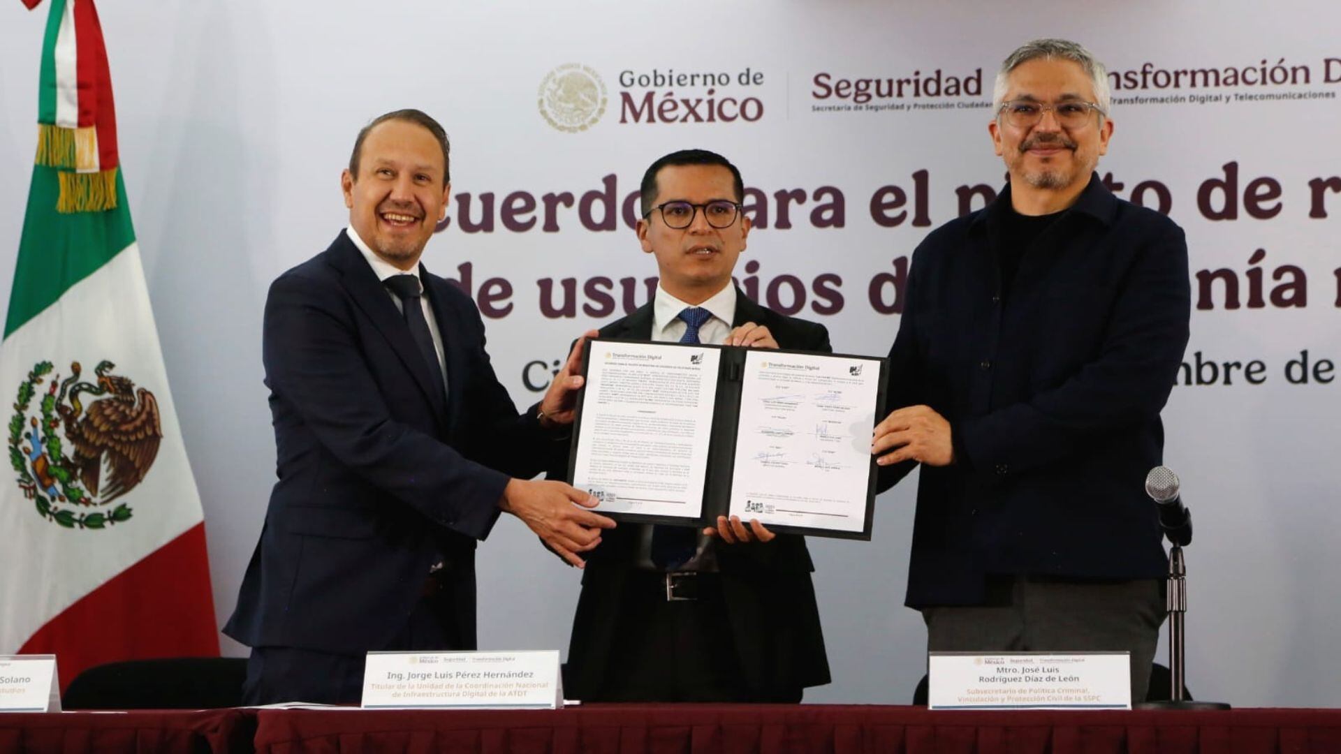 La prueba piloto se formalizó con la firma de un acuerdo entre los representantes de las compañías telefónicas y Jorge Luis Pérez Hernández, titular de la Unidad de Coordinación Nacional de Infraestructura Digital de la ATDT, durante un evento realizado en las instalaciones de la Secretaría de Seguridad y Protección Ciudadana.