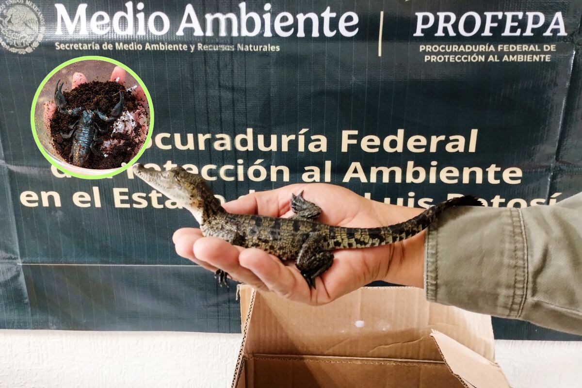 En las bodegas de una empresa de paquetería, agentes de la Procuraduría Federal de Protección al Ambiente (Profepa) aseguraron tres cocodrilos, un escorpión y dos tortugas envueltos en un paquete de mensajería, esto en San Luis Potosí.