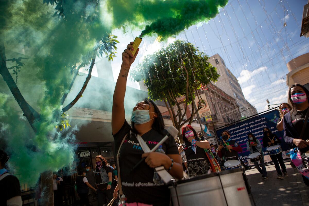 CIUDAD DE GUATEMALA, GUATEMALA Una mujer agita una bengala durante una marcha por el Día Internacional para la Eliminación de la Violencia contra la Mujer, en la Ciudad de Guatemala. (Oliver de Ros/AP)