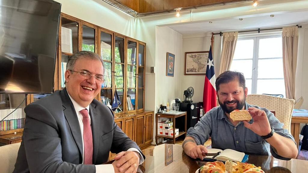 “Tuve el gran gusto de compartir la rosca de reyes con Gabriel Boric, presidente electo de Chile. Le traje un saludo afectuoso del pueblo de México y del presidente López Obrador”, expresó en la red social.