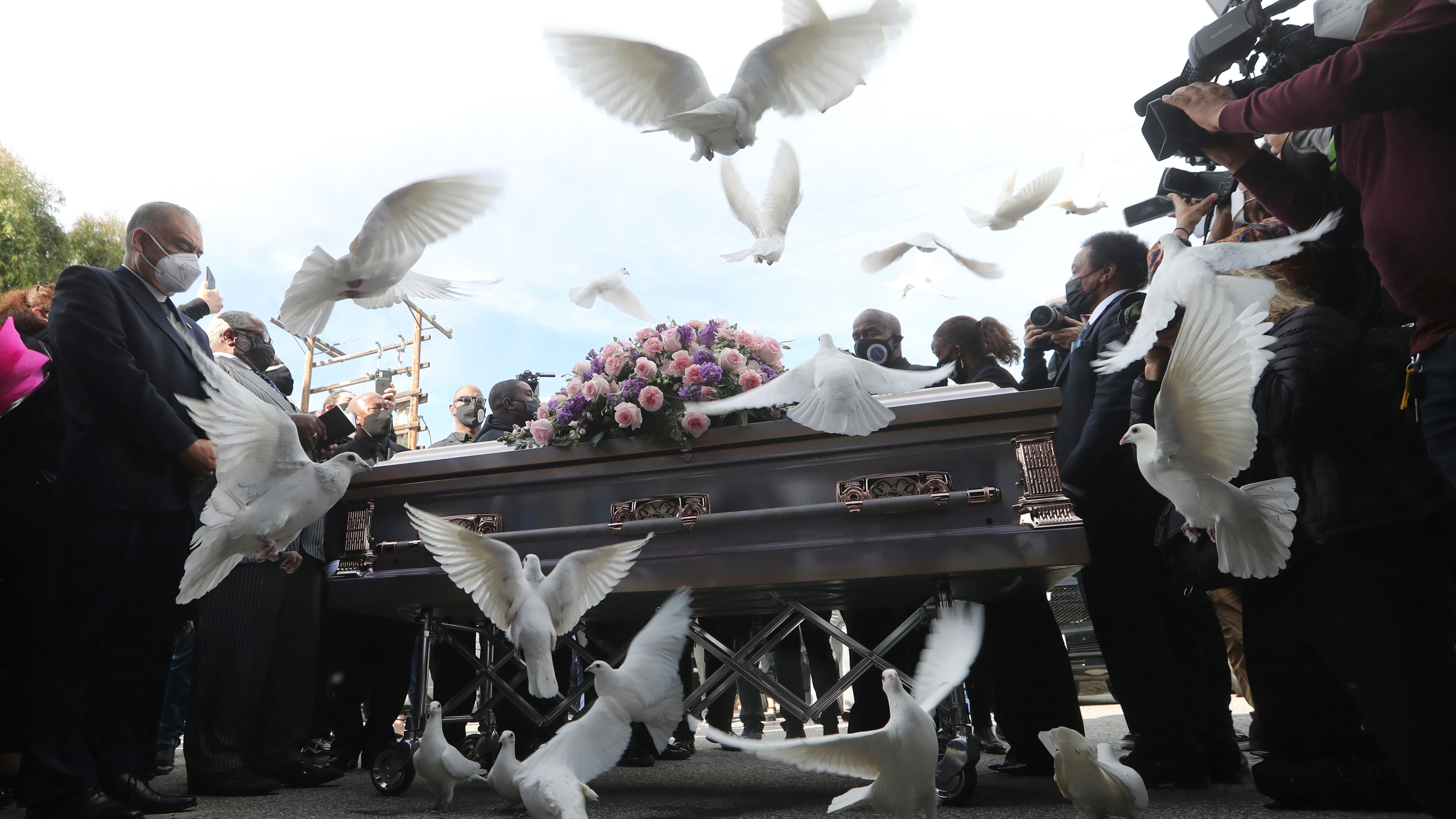 El cuerpo de Valentina Orellana Peralta fue expuesto con un vestido rosa dentro de un ataúd cubierto de flores junto a unas fotos enormes de la joven durante el funeral en City of Refuge, United Church of Christ en Gardena, cerca de Los Ángeles.