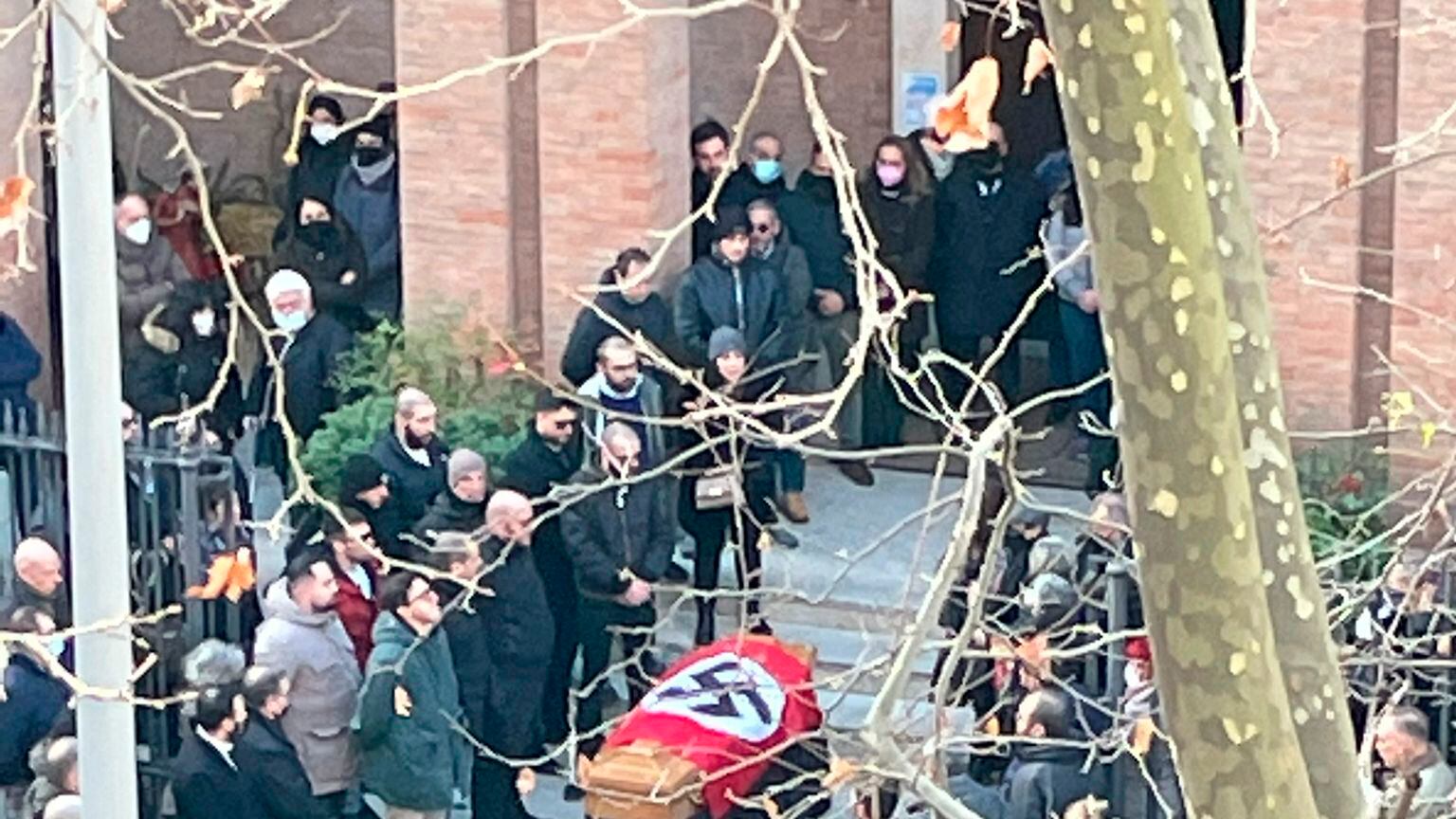 Fotos y videos de la escena afuera de la iglesia de Santa Lucía tras el funeral del lunes fueron publicados por el portal noticioso italiano Open. Las imágenes muestran a una veintena de personas afuera de la iglesia mientras dolientes sacan el féretro con la bandera nazi gritando “¡Presente!” con el brazo derecho alzado en el saludo fascista.